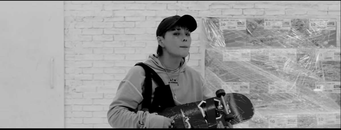 이런 가사와 함께 딘의 모습이 등장하는데, 샷이 점점 확장한다. 그런데, 딘은 기타가 아니라 스케이트 보드를 튕귀고 있다.