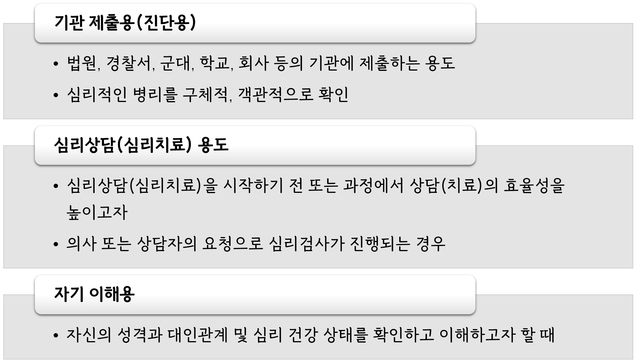 *** 심리학 전공 및 유관 전공자의 경우, 심리검사 이후 원자료를 요청하시면, 원자료를 제공받으실 수 있습니다. 심리검사를 의뢰하실 때 이점이 참고가 되면 좋겠습니다.