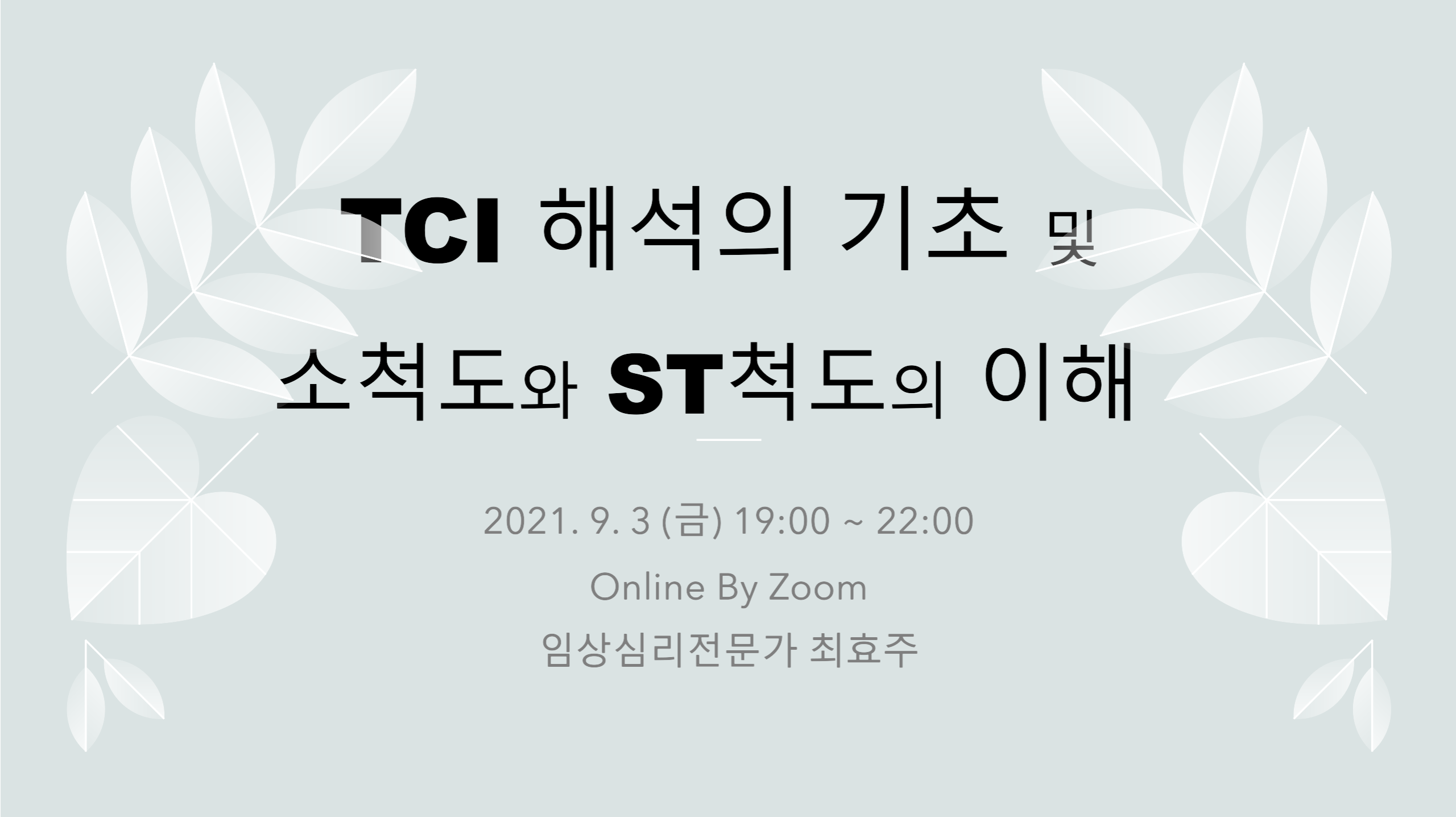 안녕하세요. 저는 임상심리전문가 최효주 입니다. 이번 TCI 온라인 워크샵에 대한 세부 안내 및 신청서입니다.