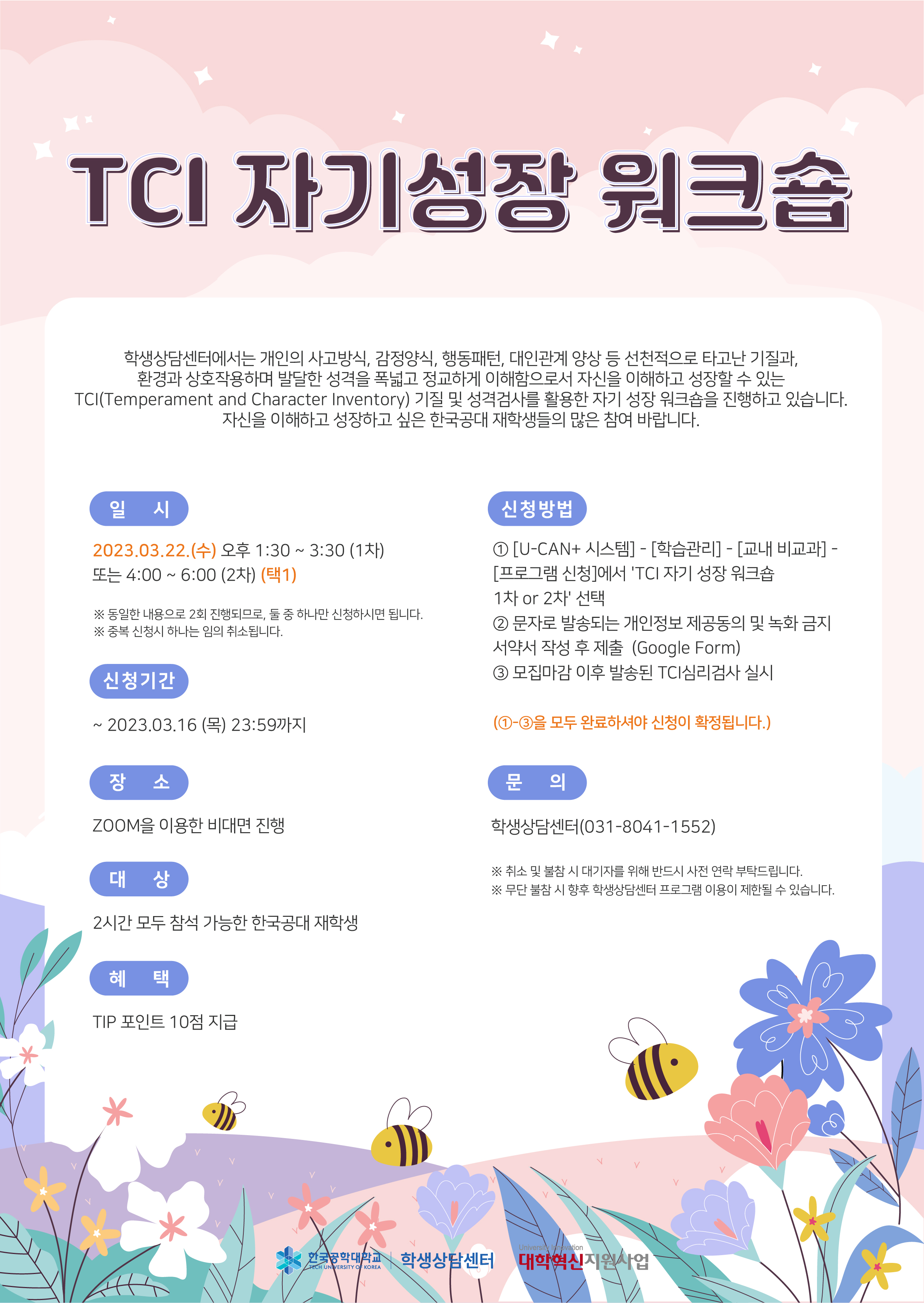 | 8월 22일 | 한국 *** 협회 | 기업상담 내 TCI 활용 (부부 및 부모 대상)![]() |