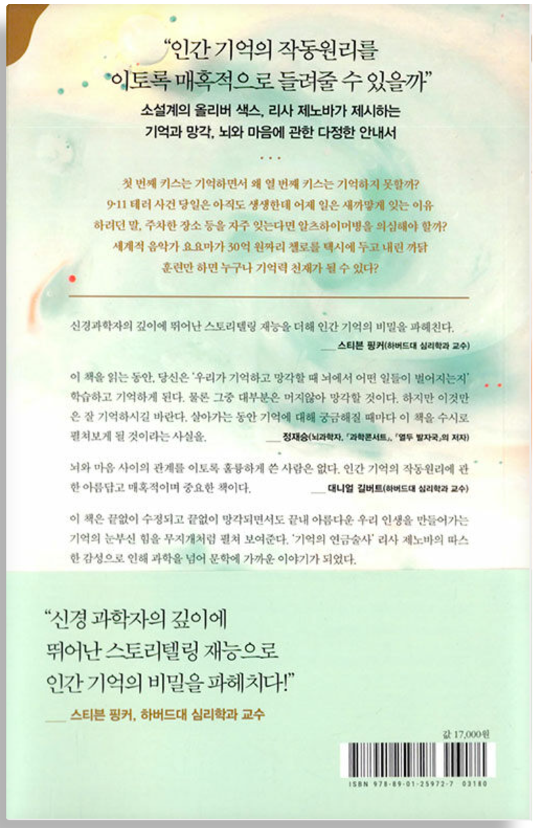 기억의 종류와 기억의 메카니즘에 대해 전문적이고 상세하게 설명해주는 내용이 많아서, 상담, 임상 분야 종사자, 특히, 종평 보고서 쓰시는 선생님들이 보면 완전, 거의 직접적인 도움이 될 수 있을 내용이 많다.