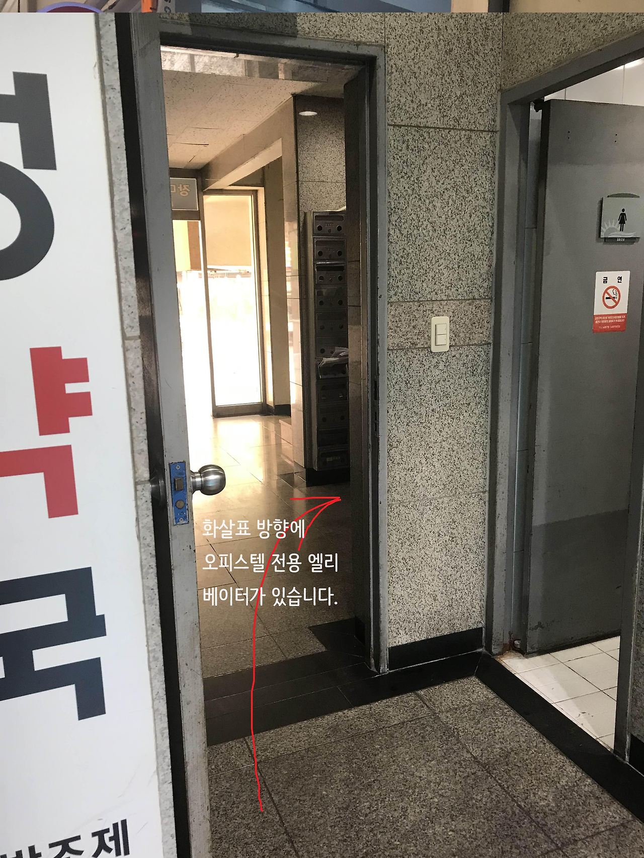 화장실 왼쪽으로 조금 들어가면 고층으로 올라가는 오피스텔 전용 엘리베이터가 있습니다.