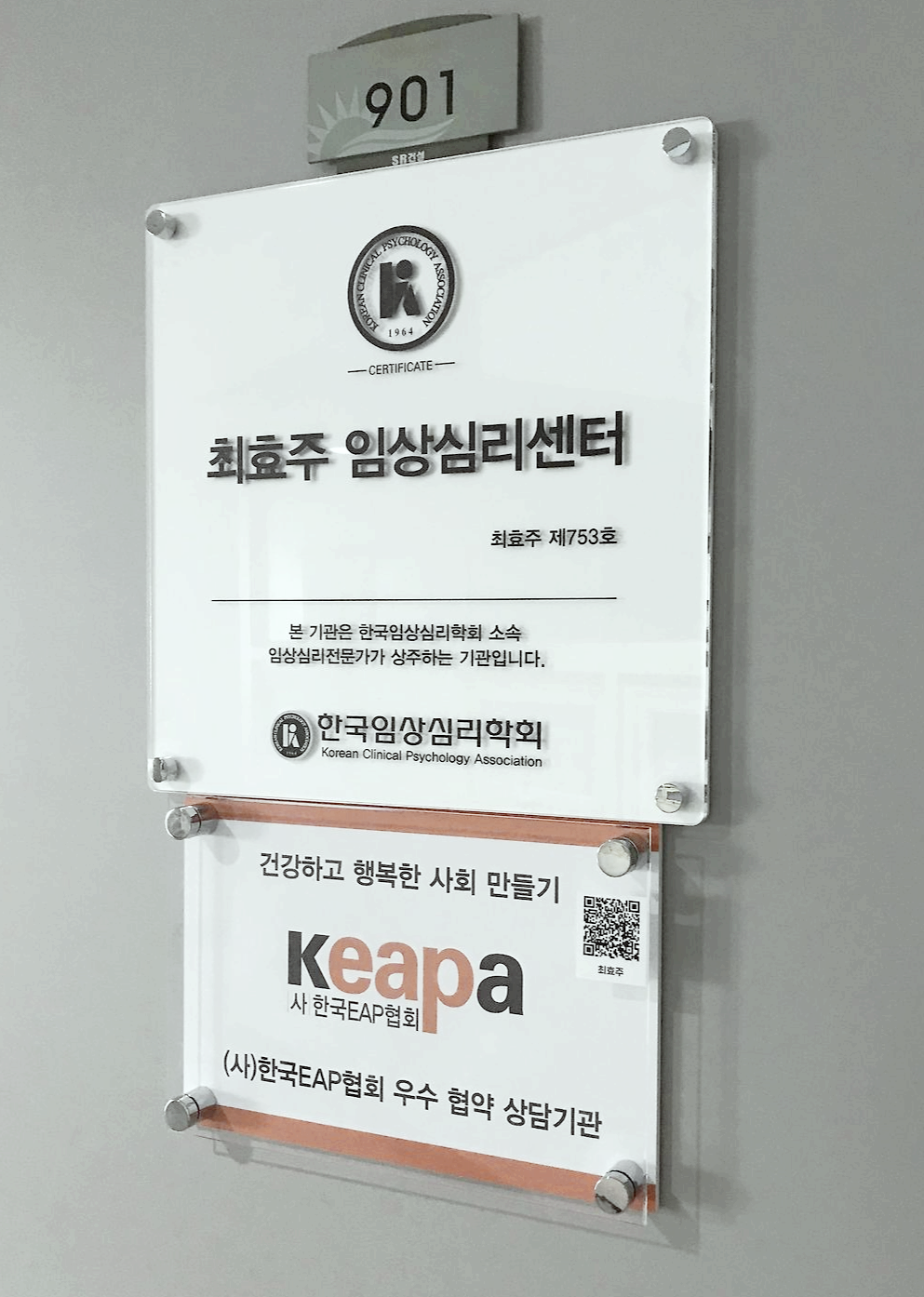 9층에 오시면 발견하실 수 있는 센터의 간판입니다.