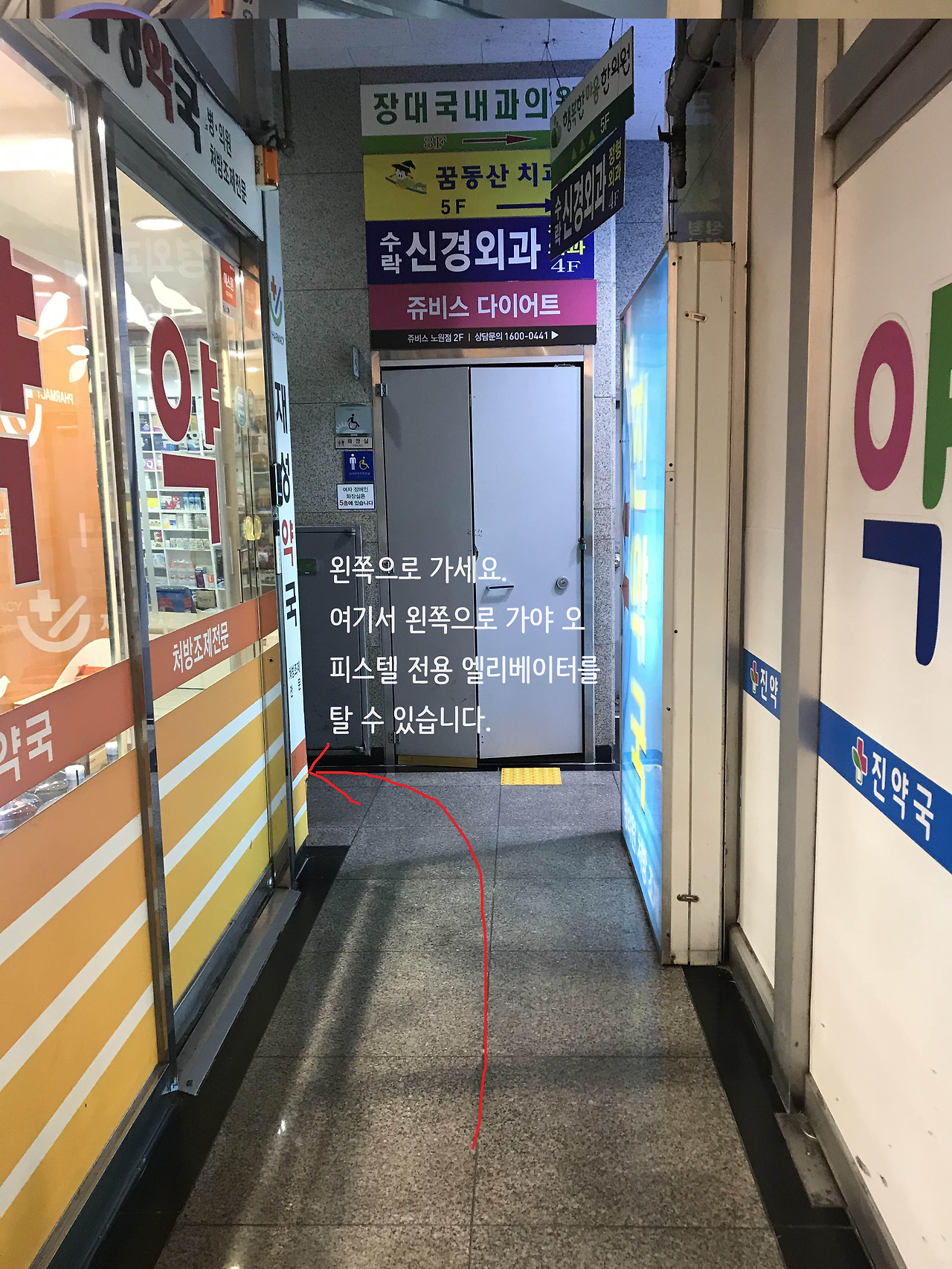 이렇게 약국 사이를 지나 - 갈림길에서 왼쪽으로 가세요. 여기가 제일 중요합니다!!!