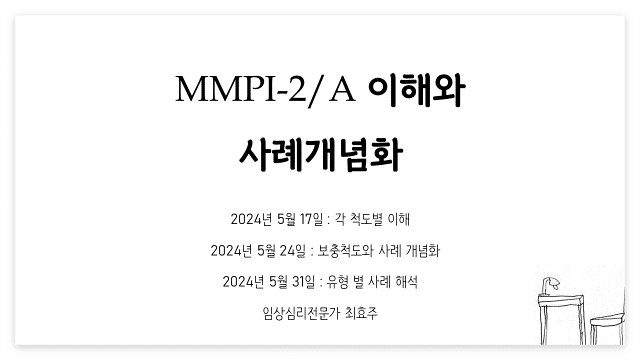 MMPI-2/A를 결과를 풍부하면서 꼼꼼하게 해석하고, MMPI 검사 결과를 토대로 사례를 개념화해보는 워크샵을 진행하려고 합니다.